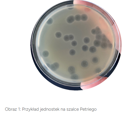Ocena wzrostu po inkubacji w jednostce PFU (Plaque Forming Unit, jednostka tworząca strefę przejaśnienia)
